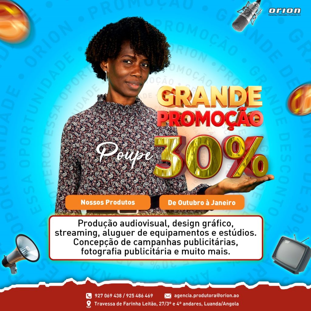 A ORION é das maiores agências de publicidade e produtoras audiovisuais do País. Ao juntar-se à nós, está a fazer parte de um grupo de instituições e marcas que beneficiaram do nosso trabalho na construção de uma imagem mais forte e mais sólida, como o Governo de Angola, a Sonangol, Organizações Chana, agências da ONU e as maiores empresas privadas e clubes desportivos do País.
